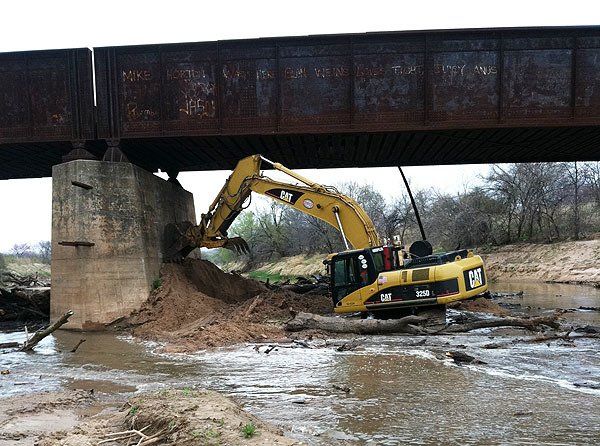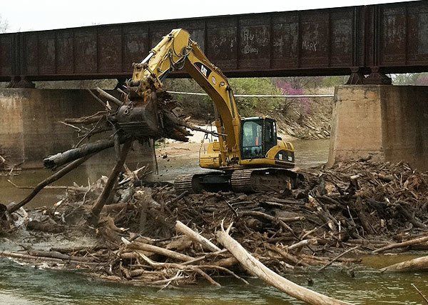 A fire on driftwood resulted in a bridge repair project for the railroad. During this work it became apparent that the driftwood was causing more concerns than just a fire threat. The railroad needed a contractor that could support their crew's bridge repair work and to pull out the driftwood from around the bridge piers.