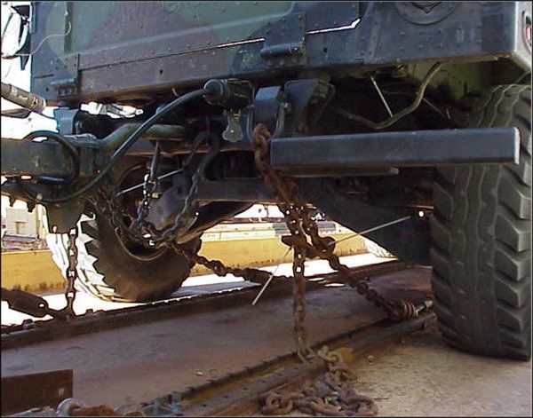 The U.S. Army was deploying military hardware from installations in Texas and Kansas. The equipment included more than 100 jeeps, cargo and personnel trucks, trailers and tanks. The military needed an experienced railroad contractor who understood the regulatory requirements for properly tying down heavy equipment on their railcars.